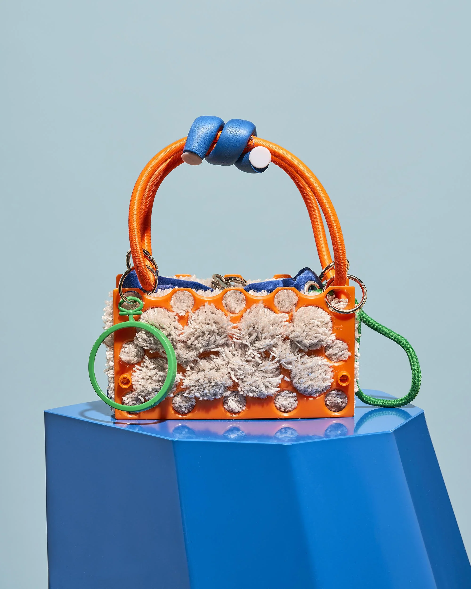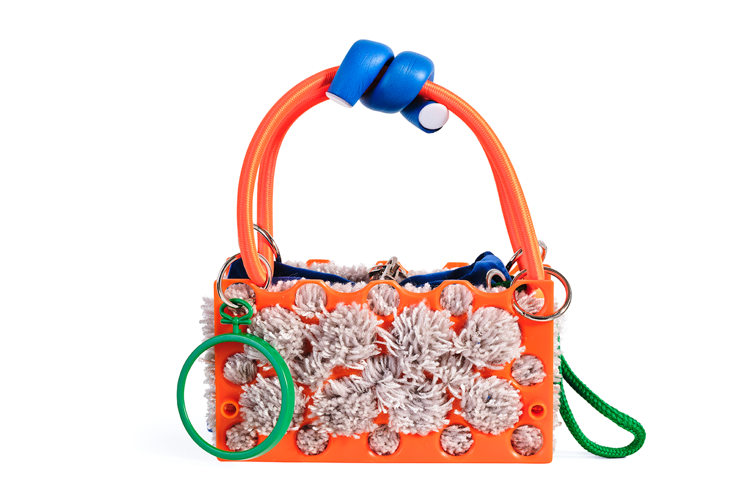 Lab test tube racks, carpet sample, velvet curtain, bungee cords, shoe laces, metal hook, hair roller, lanyard