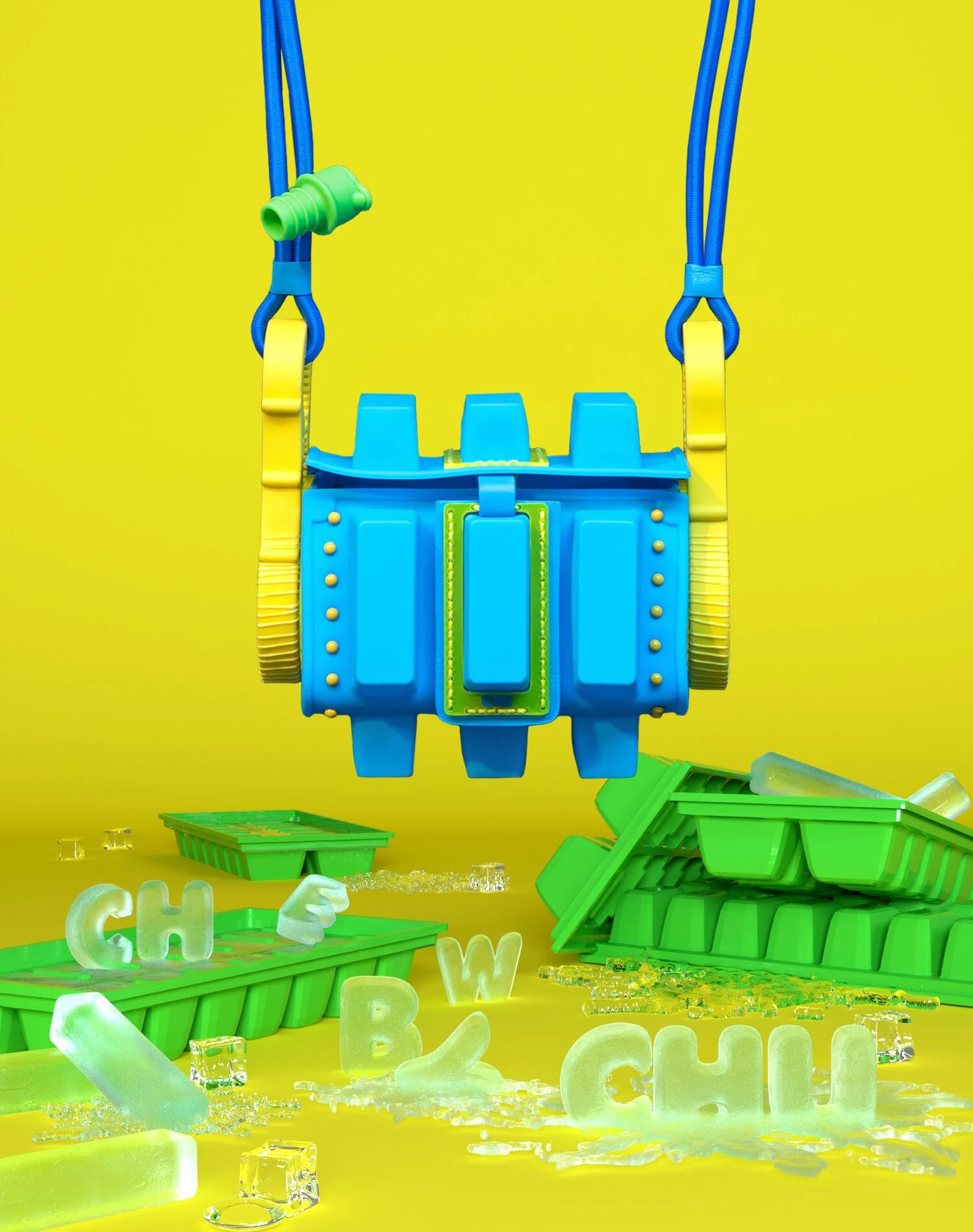 Lab test tube racks, carpet samples, rubber tubes, velvet curtains, shoe lace, hair roller, bungee cord